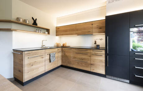 Die Küche ist das lebendige Zentrum eines Zuhauses – hier treffen Genuss, Begegnung und Alltag zusammen. Unsere massgefertigten Schweizer Massivholzküchen gewinnen besonders dann an Bedeutung, wenn sie sich harmonisch in Ihren Wohnraum einfügen und zum echten Mittelpunkt des Lebens werden. Gerne gestalten wir diesen wertvollen Ort gemeinsam mit Ihnen: persönlich, individuell und nachhaltig. Natürlich aus unserer Schreinerei.
