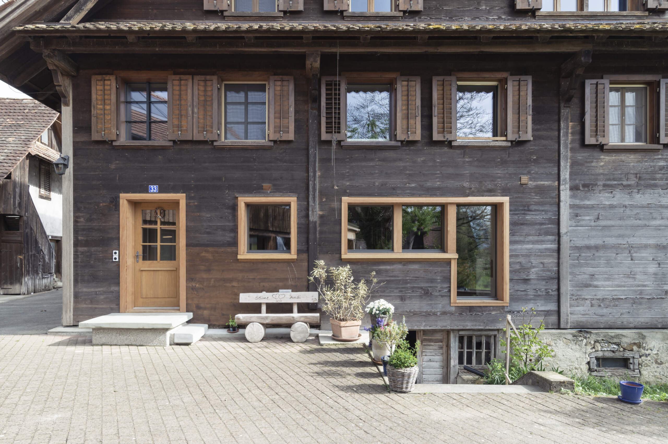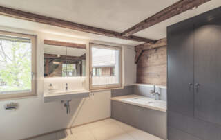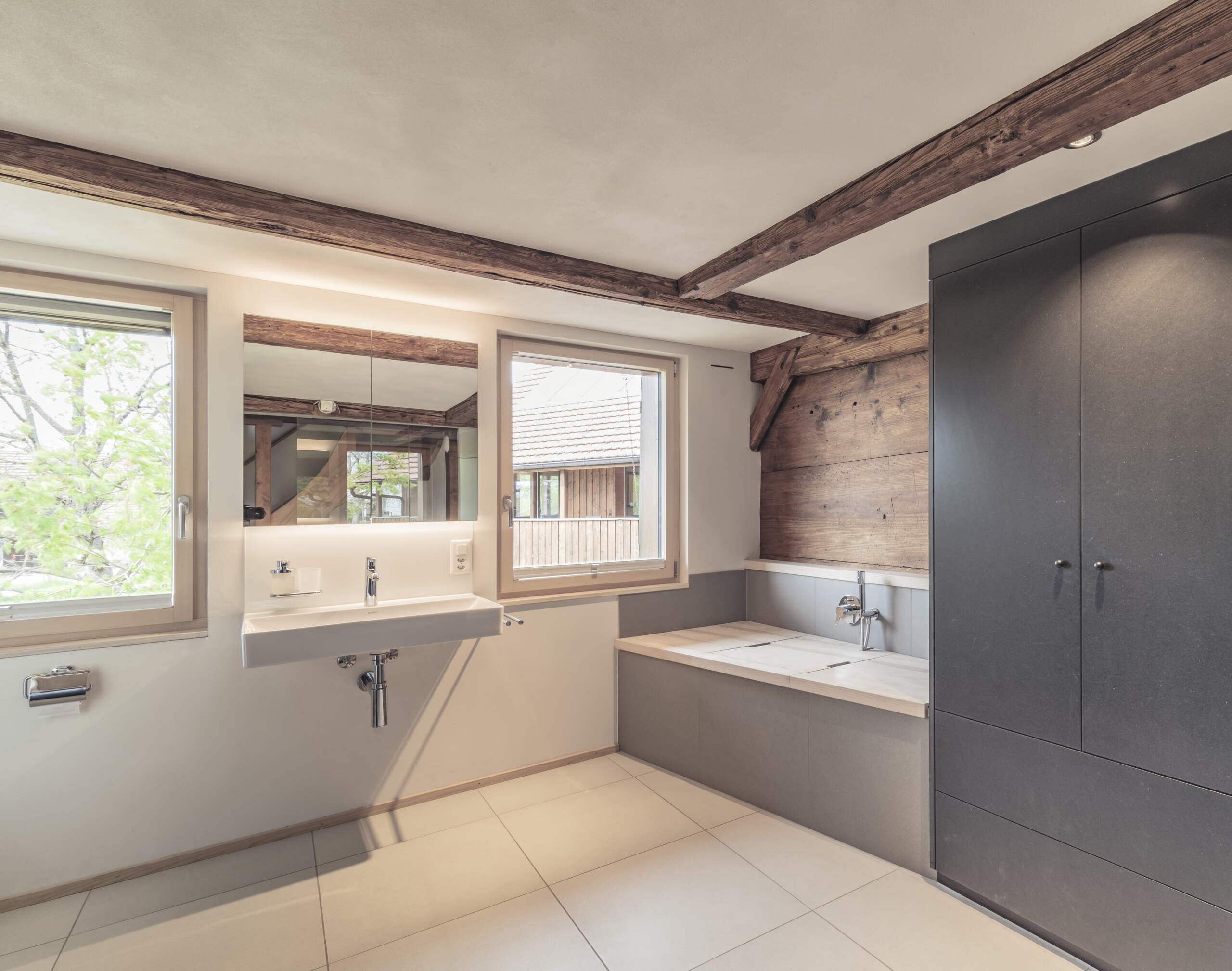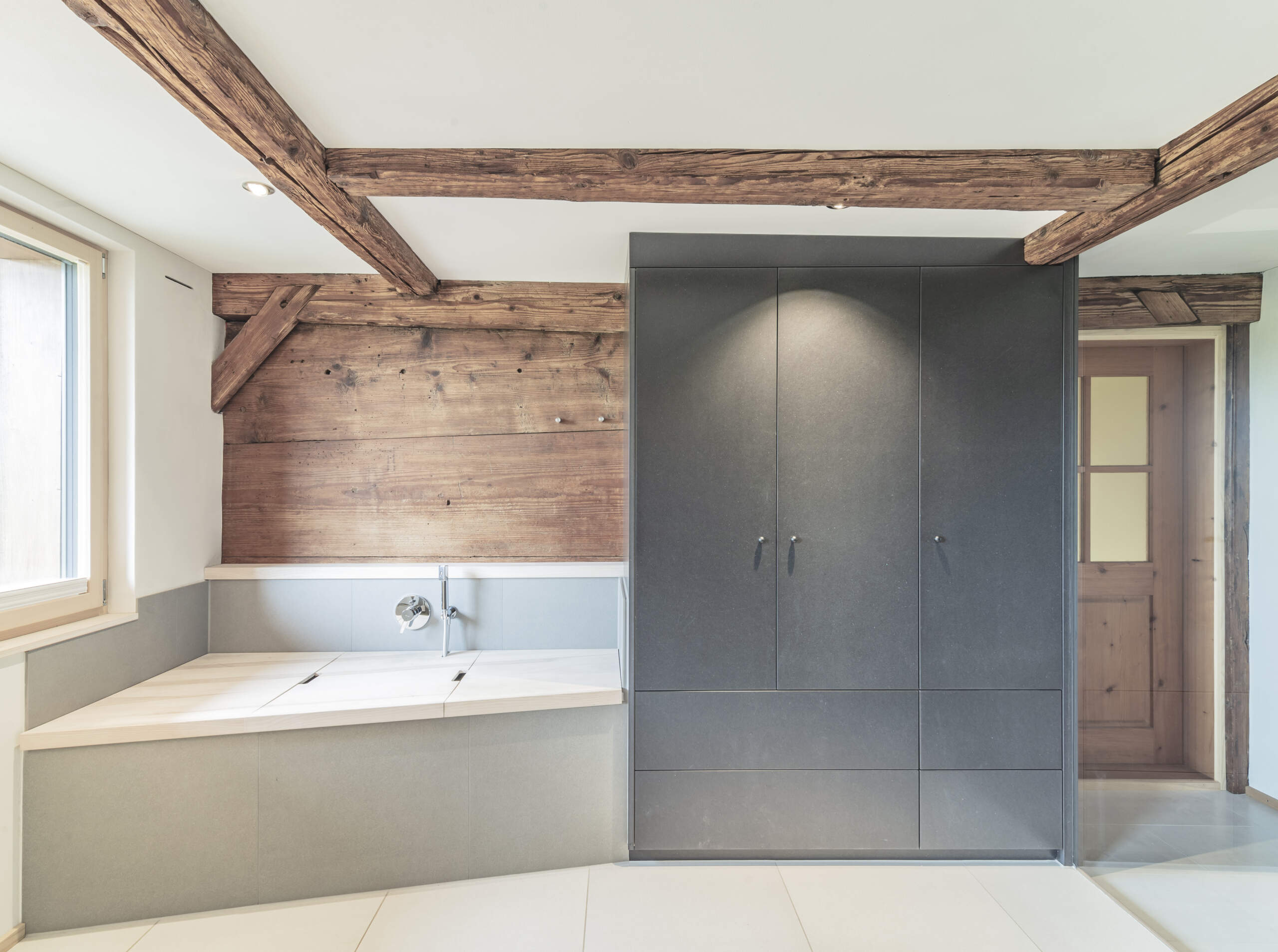Das alte Bauernhaus wurde komplett umgebaut und die bestehenden Elemente ergänzen sich perfekt mit dem modernen Innenausbau.