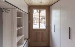 - Haustür gestemmt in massiver Eiche, natur geölt mit aufgesetzten Kreuzsprossen aussen.