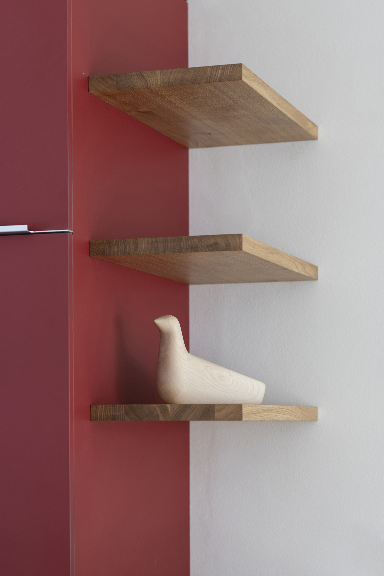 • Ablage, Ecktablare und Handtuchhalter in Eiche.