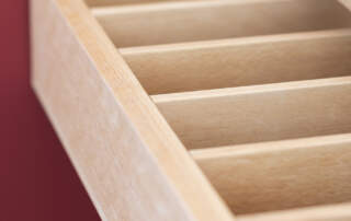 • Korpus und Tablare aus massiver Fichte, natur geölt.