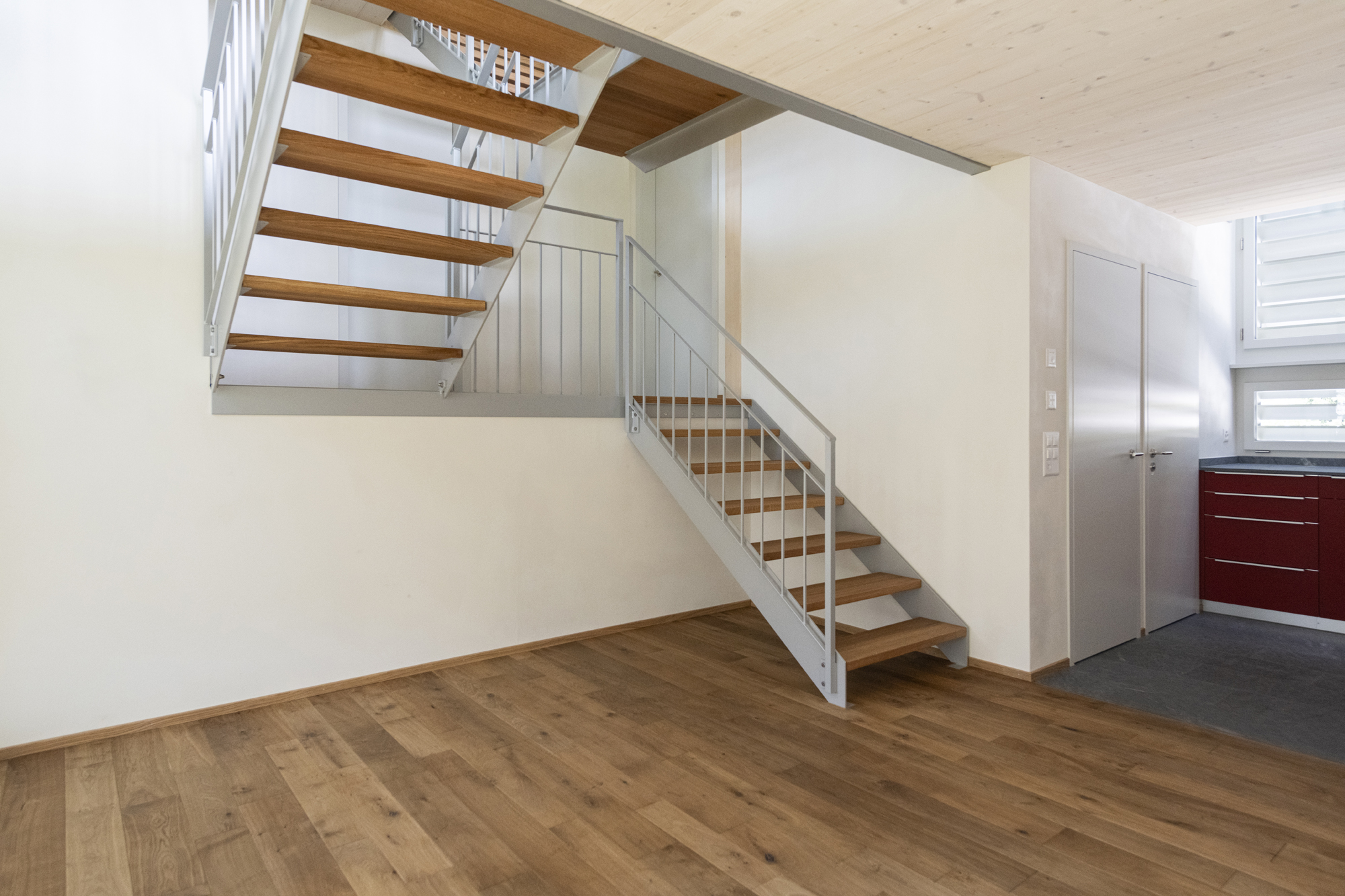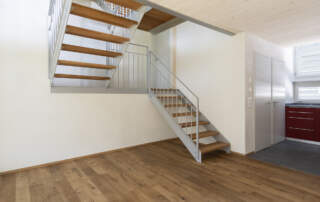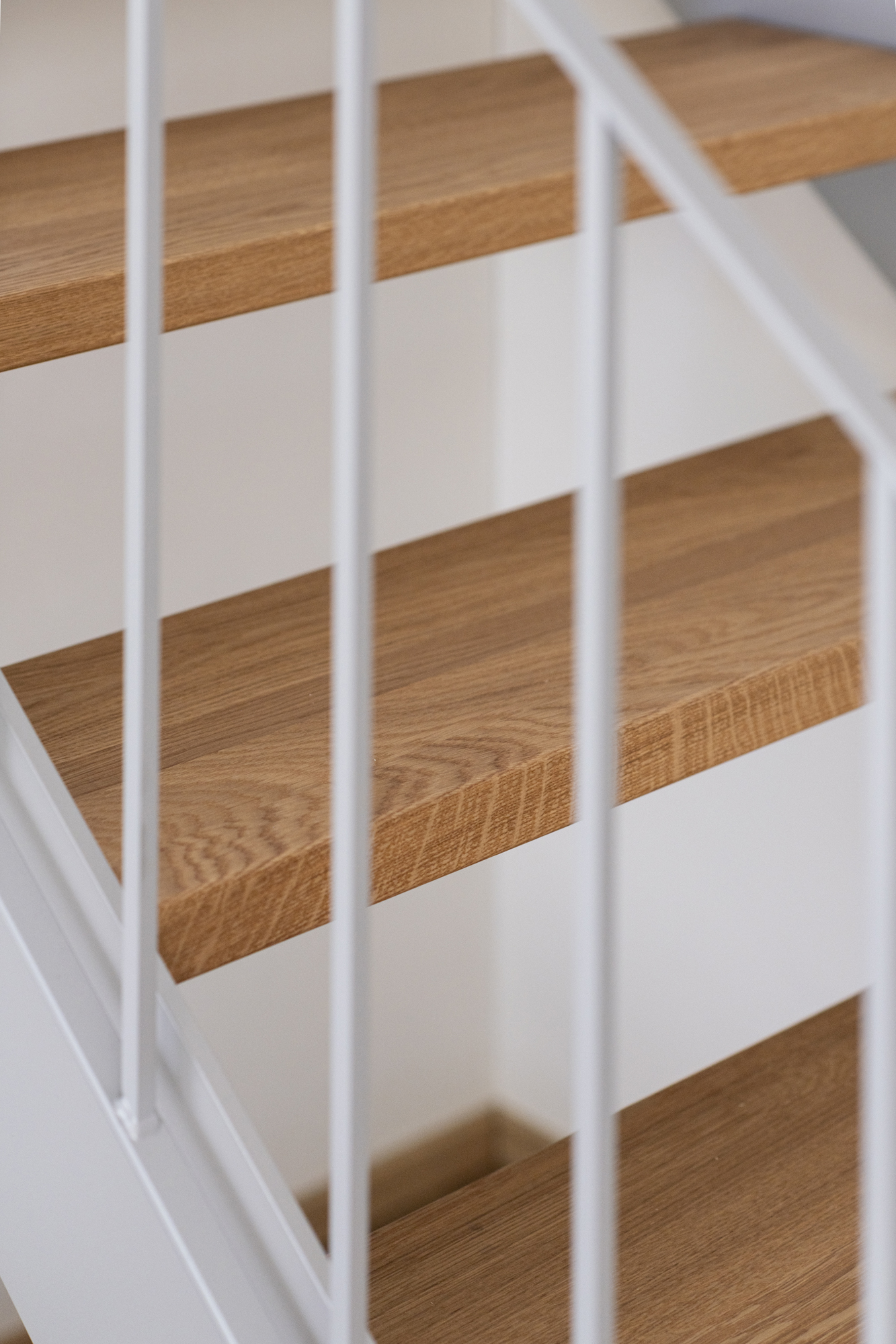 • Treppentritte aus massiver Eiche, leicht gebürstet.